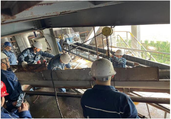 為更好解決后續(xù)物料輸送壓力,減少系統(tǒng)非計劃停機,威遠藍鼎生產(chǎn)部決定將兩條螺旋技改成輸送皮帶,1030日,蒸發(fā)濃縮停機檢修,副總經(jīng)理黃安軍、副部長楊平、宋雨鵬協(xié)同檢修班長集中檢修骨干對氯化鈉螺旋進行技改,311330螺旋改輸送皮帶技改完成進行試車,112日帶料試車正常,經(jīng)過一周使用觀察,本次技改相比螺旋故障率更低,物料輸送更松散、均勻,也大大改善了干燥前端下料堵塞等問題,同時也得到了釩廠運行車間的認可和生產(chǎn)員工一致好評,體現(xiàn)了公司敢于創(chuàng)新、技改的精神。